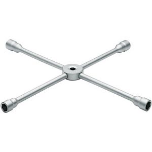 Chiave a croce per svitare e riavvitare i bulloni o dadi che bloccano la ruota, ma si può utilizzare anche per altri lavori di tipo automobilistico o meccanico che richiedono di intervenire su un bullone.
