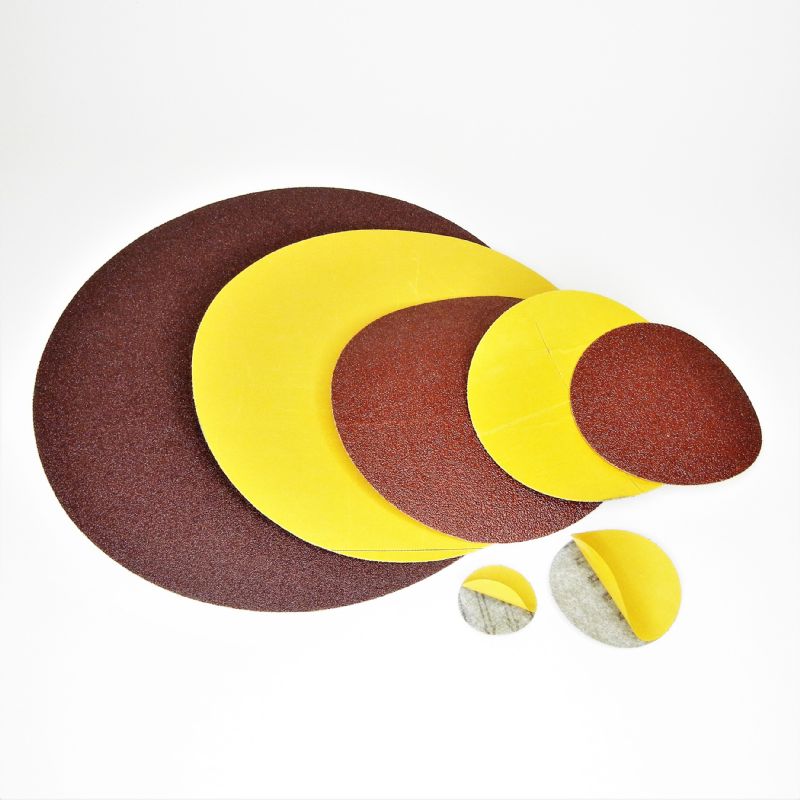 Dischi abrasivi adesivi in tela corindone per lavorazione, spianatura di stampi, conchiglie, modelli, punzoni.