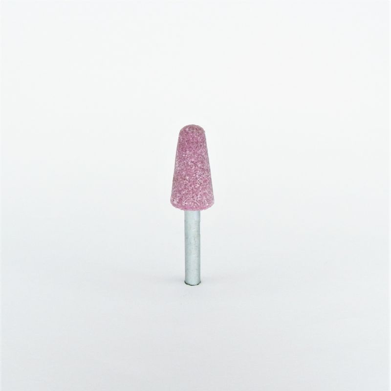 mola ceramica abrasiva conica Ø mm. 20 x 65 x 46 perno 6 grana 46 corindone rosa